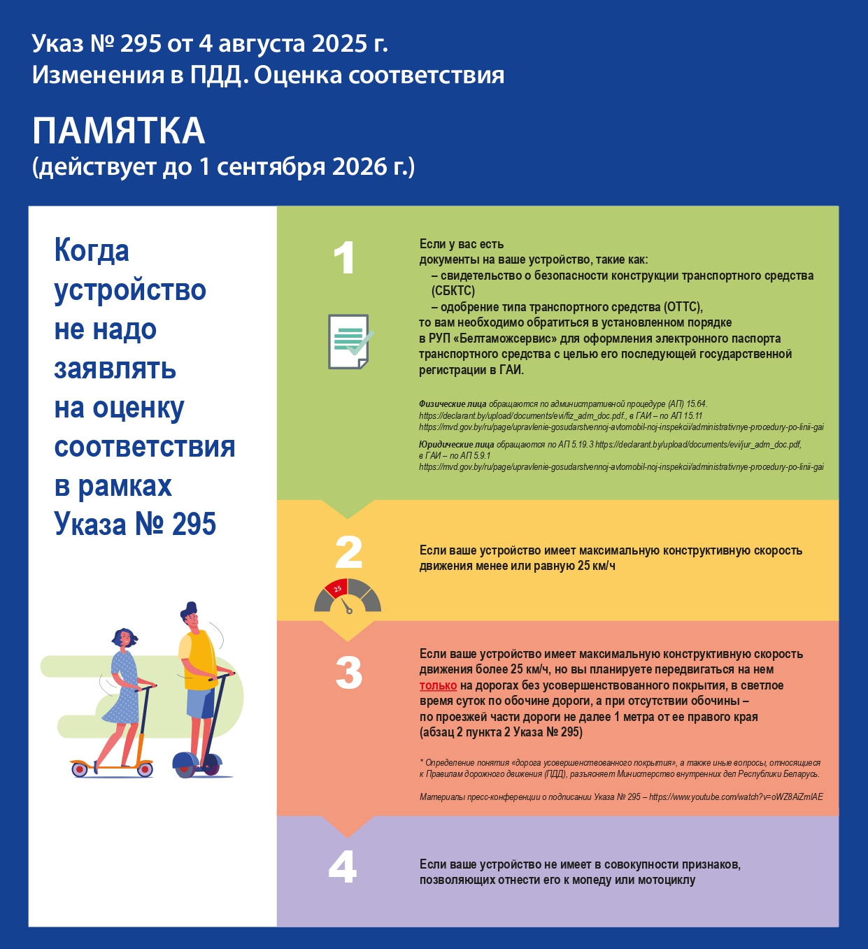 Была разработана памятка, которая остается актуальной и размещена на сайте Госстандарта в тематическом баннере «Указ № 295 от 4 августа 2025 г. Изменения в ПДД. Оценка соответствия» на главной странице.